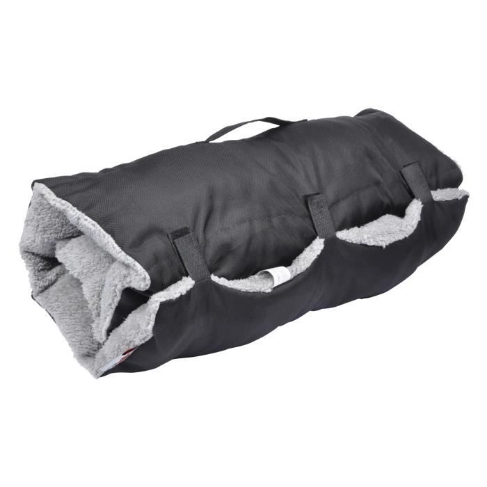 Colchón de viaje de diseño en dos tonos – En poliéster + sherpa – Dimensiones: 80×50 cm – Color: negro y gris – Para perros.